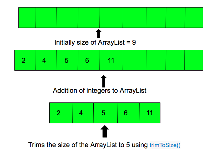 | ArrayList(int initialCapacity) | 지정된 초기용량을 갖는 ArrayList 생성 |